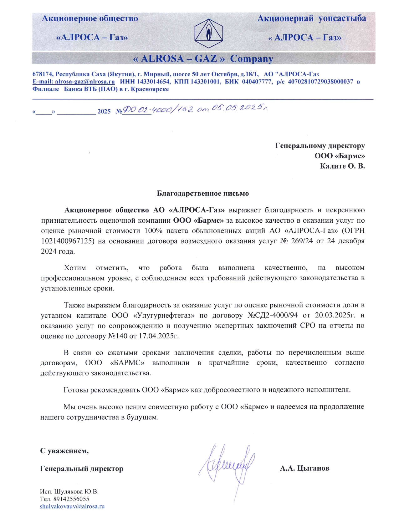 Спасибо за вашу клиентоориентированность, а также за оперативность во всех процессах.